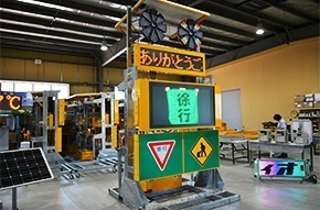 道路の工事箇所に良く見られる電光掲示板は弊社の製品かも知れません。